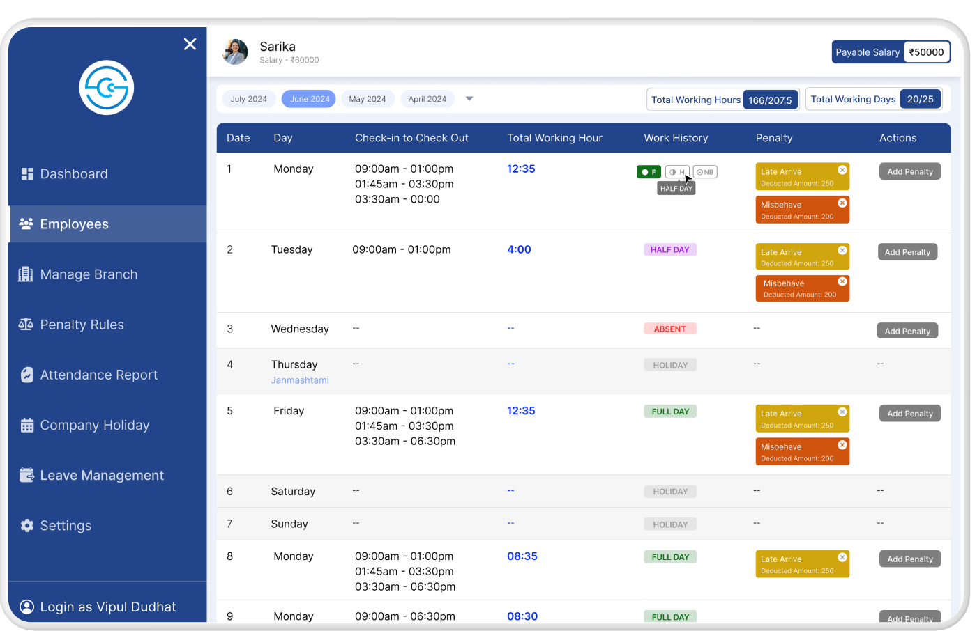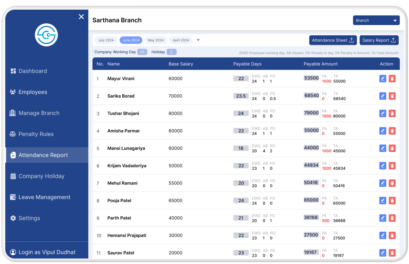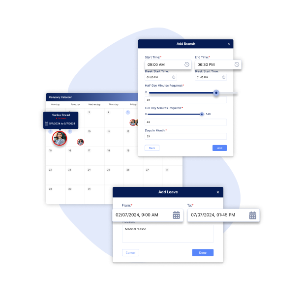 We ensure that your organization benefits from accurate time tracking, comprehensive reporting, enhanced security, and efficient management of multiple branches , leaves , and holidays.